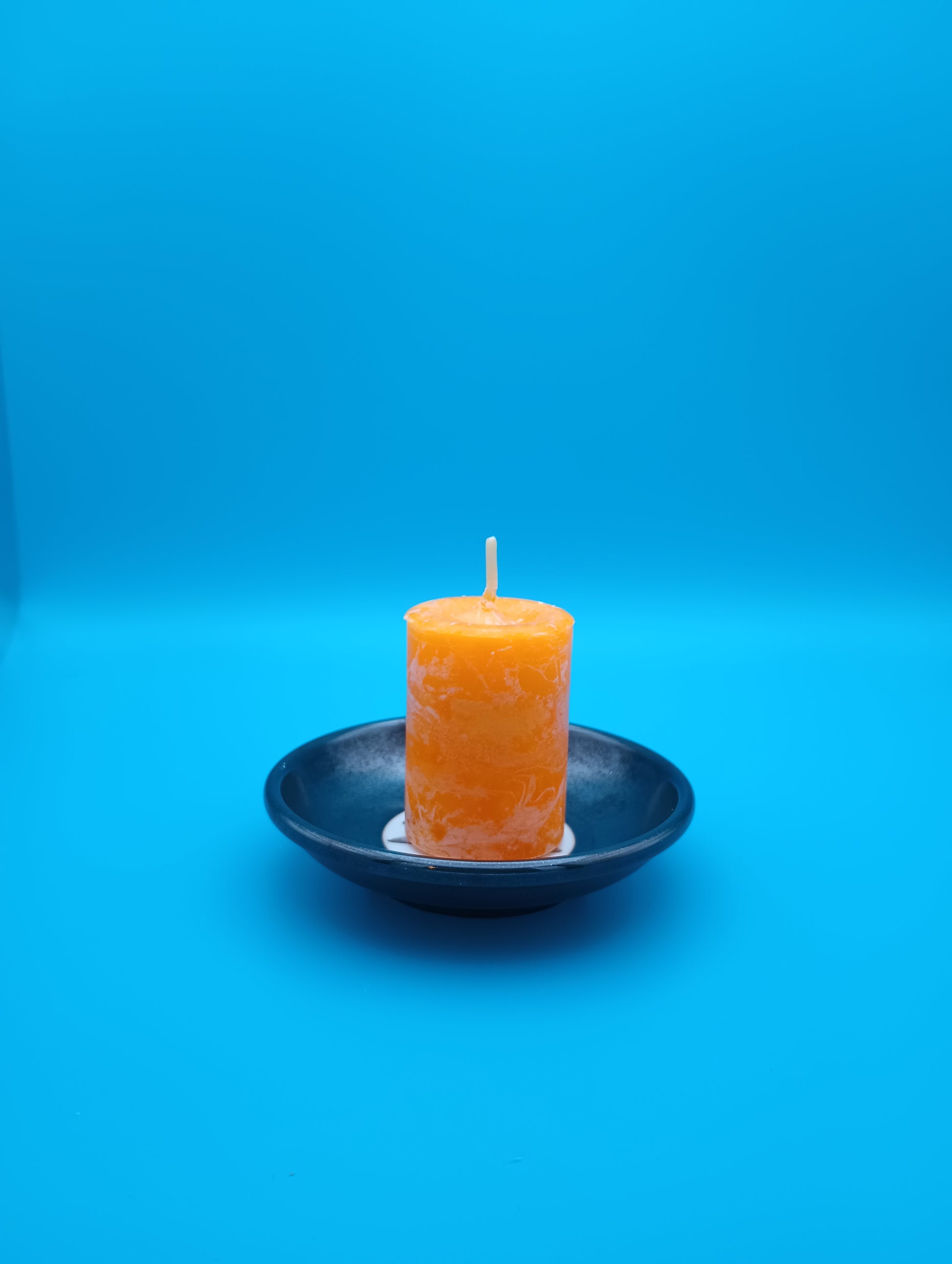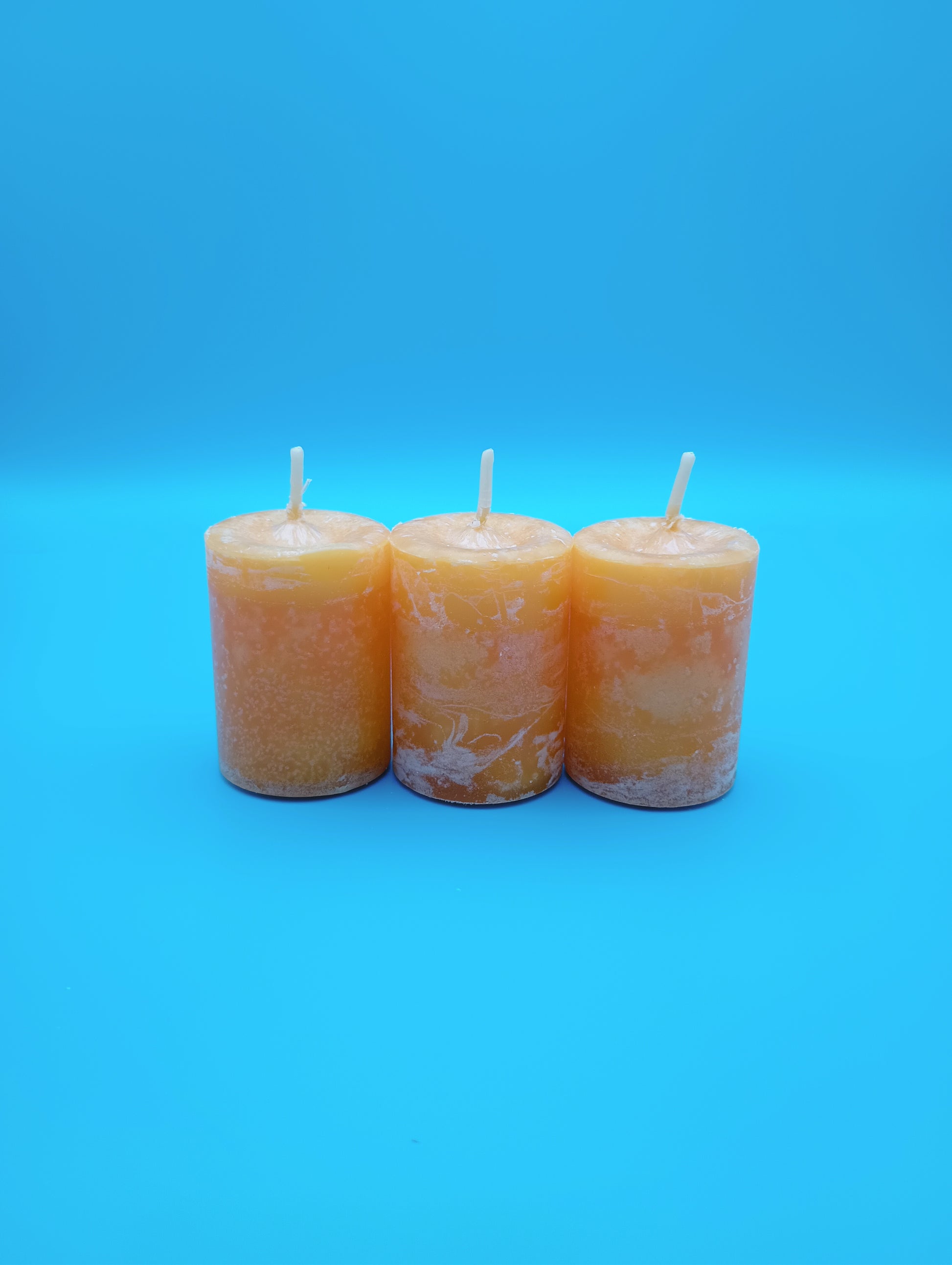 This Blessed Herbal power votive of Energy, Will, and Fire will help you unlock your inner power and get the motivation you need to manifest your dreams. Infused with sandalwood, ginger, and frankincense, it comes with a blessing to energize body, mind, and spirit. This orange votive candle has a 10-hour burn time. Made by Coventry Creations in Ferndale, Michigan.