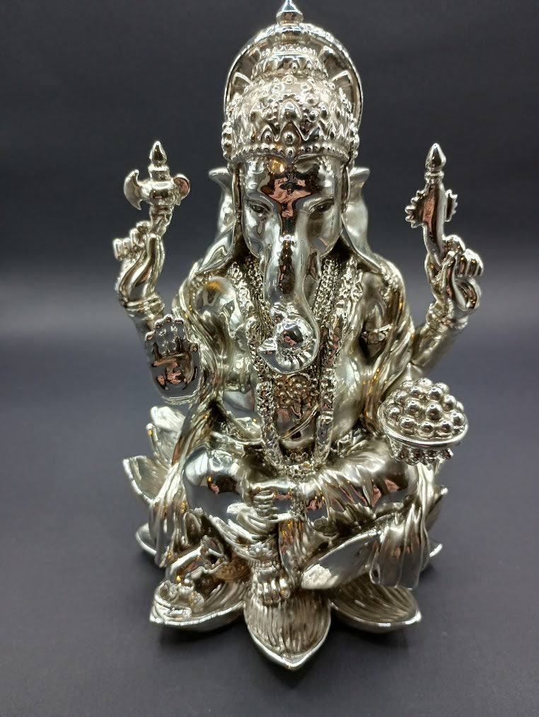 This beautiful version of Lord Ganesh sits on a lotus. Best known as the giver and remover of obstacles, he is also a great protector, and a god of scholarship & music.