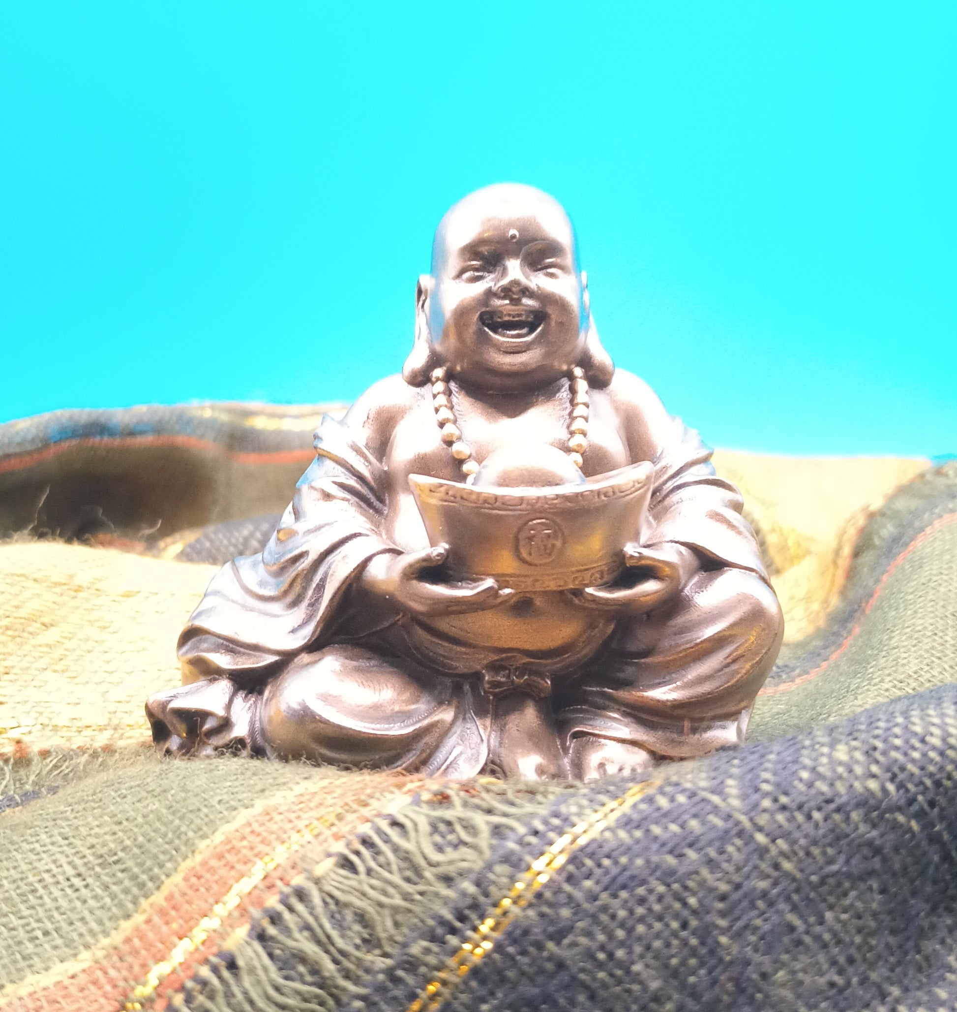 Budai, the semi-historical Chinese monk venerated in both Chinese and Japanese Buddhism is commonly referred to as the "Laughing Buddha" due to his jovial demeanor. He is also a part of the Japanese 7 Lucky Gods, and is their God of fortune, protector of the children, patron of diviners, and the God of popularity. He is easily identified by the sack he carries around, signifying his happy and unique nature.