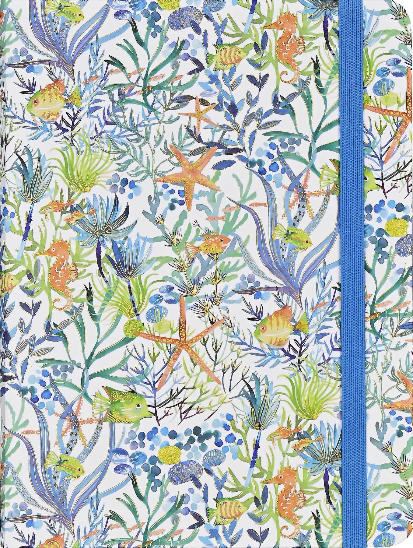 A dreamy undersea forest, filled with tropical fish, starfish, and seahorses, is the focus of this gorgeous journal. Design is embossed and embellished with hand-selected touches of gold foil.