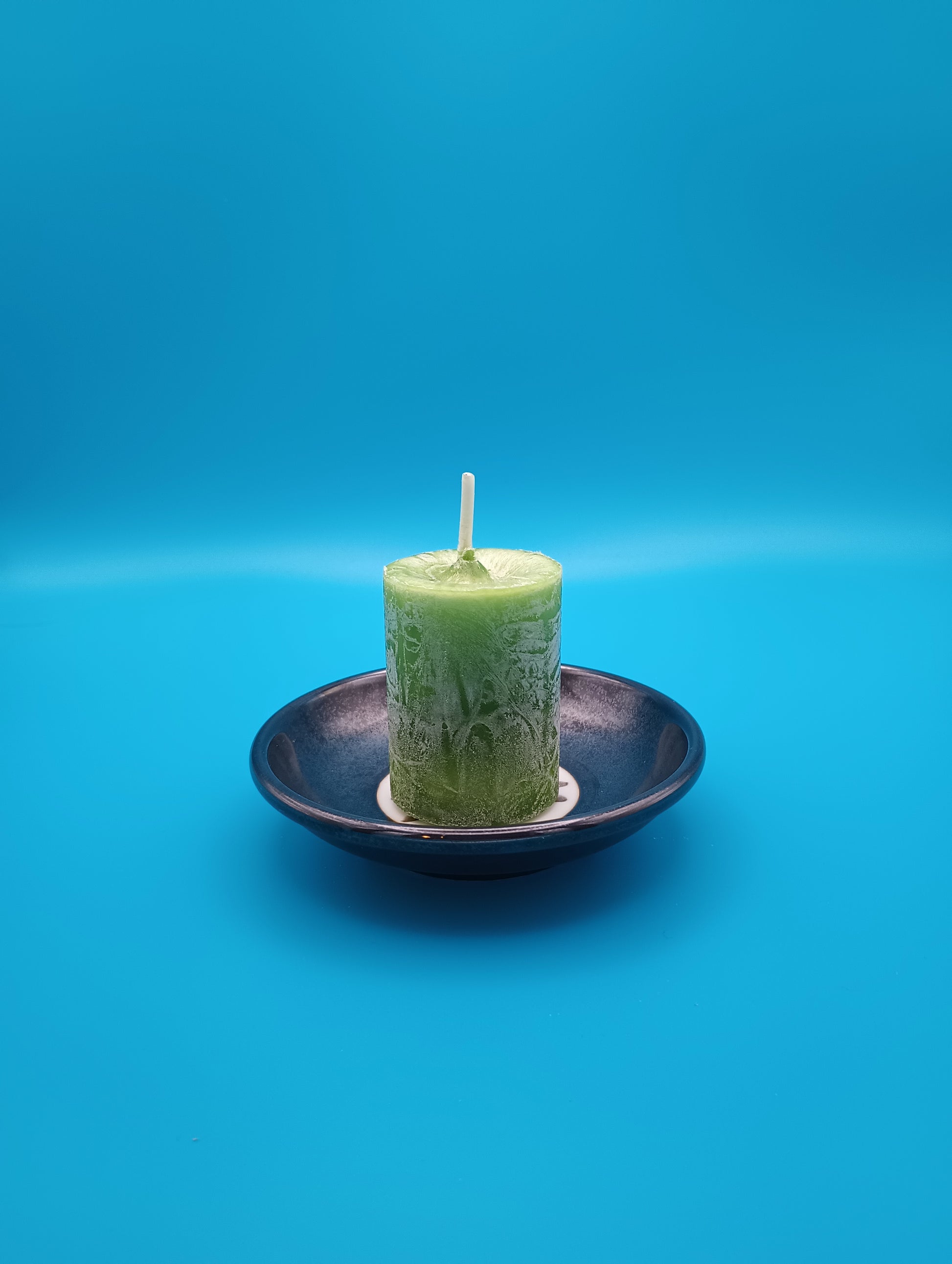 Harness the power of the universe for your own prosperity with this Blessed Herbal Prosperity Power Votive! Infused with the essential oils of orange blossom, clove, and cinnamon, this bright green candle is specially formulated to help you manifest all that you need and deserve. This candle has an approximated 10-hour burn time which means you'll have plenty of time to make your dreams a reality! Made by Coventry Creations in Ferndale, Michigan.