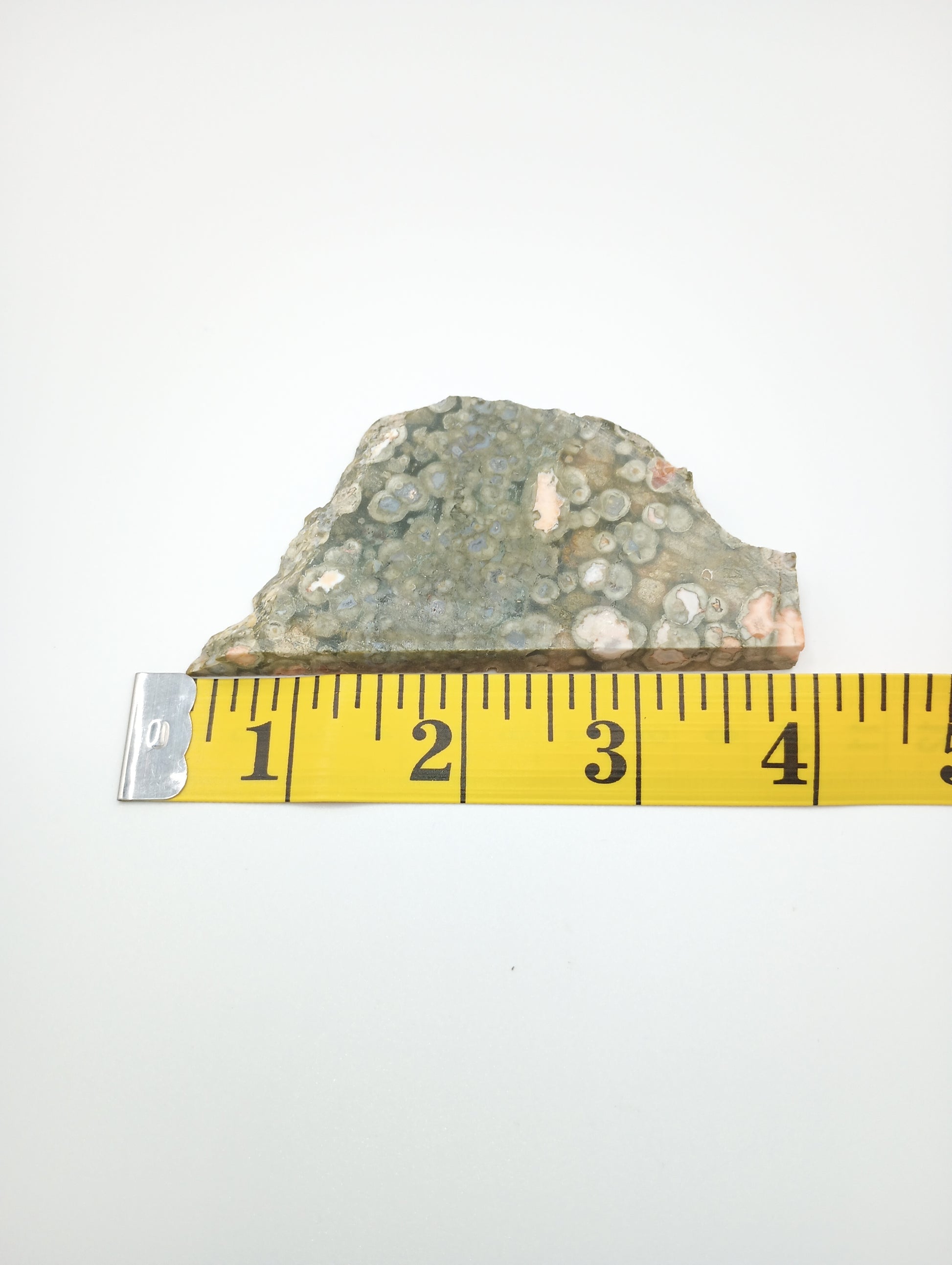 Rainforest Jasper is a special type of rhyolitic lava linked to volcanic activity in some areas. It consists of large-grained elements, such as feldspar or quartz, placed in a silicate-rich rock. This kind of rhyolite has agate pockets too. Rainforest Jasper works with the energy body to help clear and harmonize. It helps us to feel more anchored and at ease while we are navigating the world. This stone can also assist us when it comes to connecting and communicating with nature.