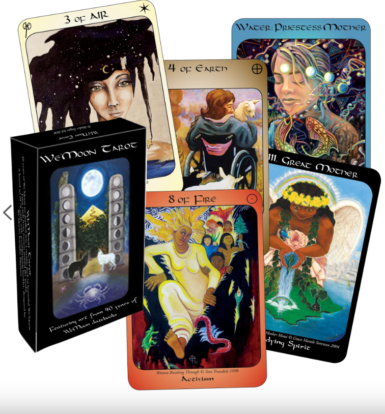 This impressive 78-card tarot deck comes complete with a 130-page full-color guidebook, all enclosed in a hard-shell box. We’Moon Tarot Card Deck is compiled with art from the We'Moon datebook published across 40 years. With a unique feminist viewpoint and an earth-based women’s spirituality, this multicultural/multigenerational spread offers a great overview of an extraordinary period in our lives.
